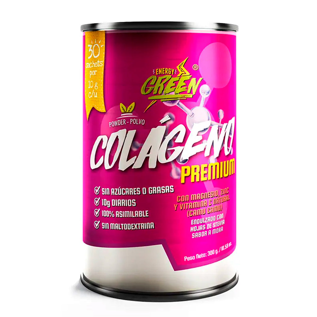 Ingredientes: 95% colágeno natural hidrolizado, 2% de magnesio y zinc, 2% vitamina C (camu camu en polvo) y 1% stevia (edulcorante natural) y sabor a mora.