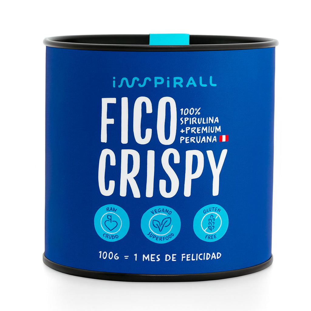 Fico Crispy es una versión mejorada de la espirulina deshidratada, con un sabor umami delicioso, textura crocante y potenciada con un 75% más de ficocianina 💙 y 39% más de proteína 💚 que la versión tradicional.