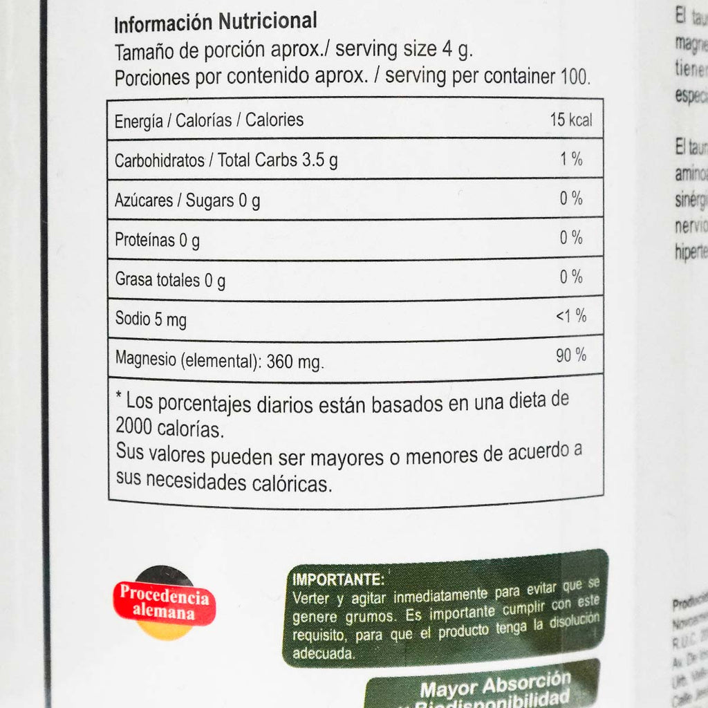 Ingredientes: 100% Magnesio Taurato (de procedencia alemana).