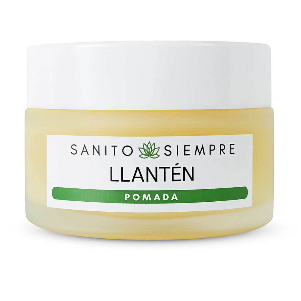 La Pomada de Llantén 30g es un bálsamo natural elaborado con hojas de llantén, aceite de oliva extra virgen, cera de abejas y vitamina E, reconocidos por su acción protectora y reparadora de la piel.